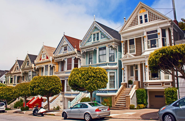 The colorful houses known as the Painted Ladies sit proudly across from the skyline. Visit in the afternoon for the best light. Bring a small snack and sit on the grass at Alamo Square. Children laugh nearby. Dogs run across the grass. People rest and take photos.