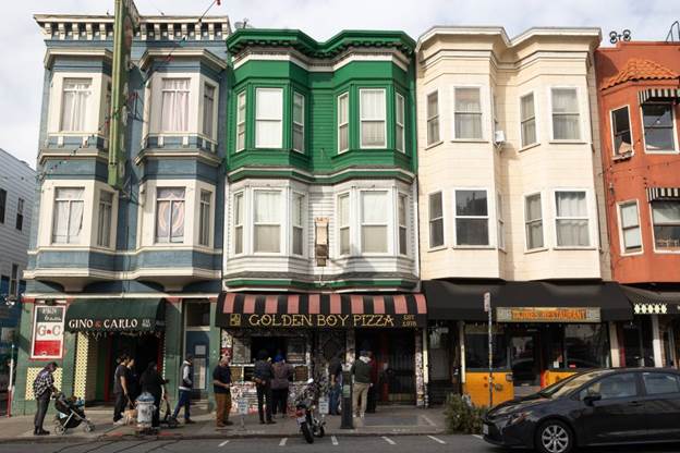 After exploring the tower, you can walk down to North Beach. This neighborhood is known for Italian cafes, small shops, and cozy streets.