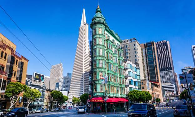 Columbus Avenue is the heart of North Beach. It curves gently and feels friendly. In the morning, the street is quiet. Cafés open their doors. You hear cups clinking. People walk dogs or carry bread bags home.