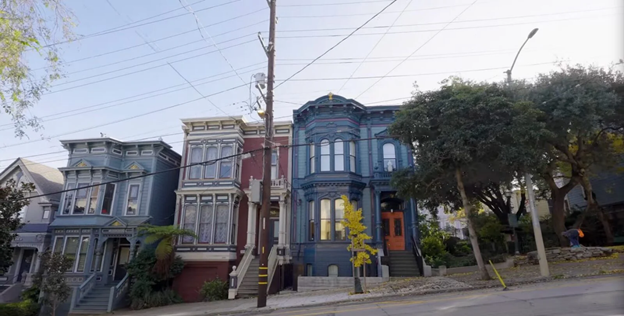 Start by walking along Steiner Street and standing across from the houses. The Painted Ladies are tall Victorian homes painted in gentle colors like pastel blue, soft pink, and warm cream. Each house looks similar, but none are the same.